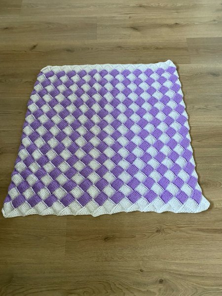 Barn filt hemstickad i näverstickning .