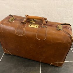 Ca mitten 50-tal. Skick: den har lite skador, se bilder. Dekorationsflätan framtill har lagats (gått av och limmats/spikats dit igen).