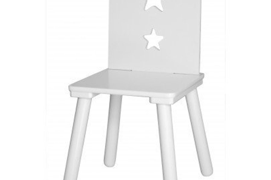 En vitlackerad stol ur STAR konceptet. Stolen har robusta ben som dessutom är vinklade vilket gör dem väldigt stadiga så att stolen håller för mycket lek och bus.