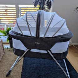 En praktisk resesäng som är lätt att ta med sig. Den är enkel att fälla upp och ner, och tar liten plats när den är nedpackad. Perfekt för resor eller som en extra säng hemma.