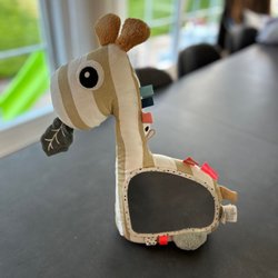 En rolig och interaktiv leksak i form av en giraff. Perfekt för barn som älskar att leka med bollar och utforska olika färger och former. Snurrar och låter har två ljudlägen. Från BrightStarts. Någon boll kanske är borta och barnen har använt bollarna tidvis som tuggleksak - men funkar utan anmärkningar! Har varit otroligt uppskattat.