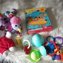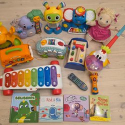 Ett roligt leksakspaket med färgglada byggklossar (mega blocks), en söt elefantleksak och ”krok”- leksaker (sassy och teddykompaniet) som stimulerar barnets utveckling och fantasi.