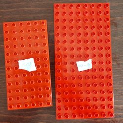 Två gröna Duplo byggplattor