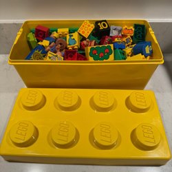 Ett parti Duplo med blandade bitar, figurer och fordon. Perfekt för små barn att bygga och leka med.