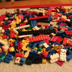 Ett blandat set med Lego Duplo bitar. Innehåller bland annat klossar med siffror, fordon och diverse andra bitar.