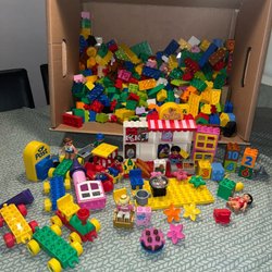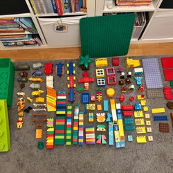 Stor samling av Lego Duplo. Inkluderar många klossar i olika färger, figurer, fordon och andra tillbehör. Perfekt för barn som älskar att bygga och leka.