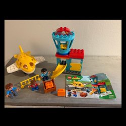 Lego Duplo set med flygplats tema. Innehåller flygplan, flygledartorn och tre figurer. Perfekt för barn mellan 2-5 år. Endast delarna på bilden. Kartong medföljer ej. Duplot är tvättat.