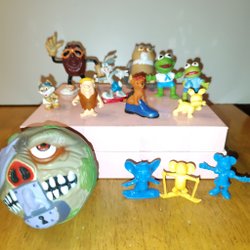 Ett blandat set med leksaksfigurer. Inkluderar bland annat Zelfs, Hello Kitty och diverse djur.