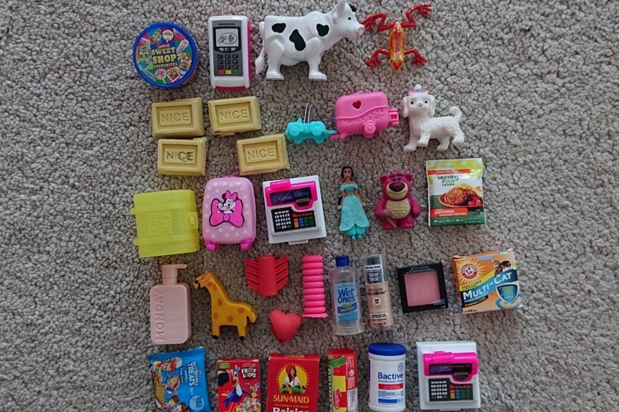 Ett sortiment av Mini Brands leksaker. Perfekt för samlare eller barn som älskar att leka med små leksaker.