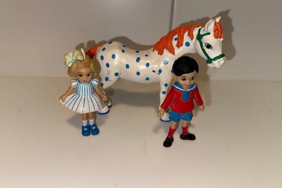 Leksaksset med lilla gubben Tommy och Annika. Skick enligt bild.