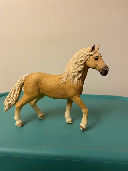 Schleich hästfigur i beige och vit färg. Hästen har en man och svans i ljusare nyans.