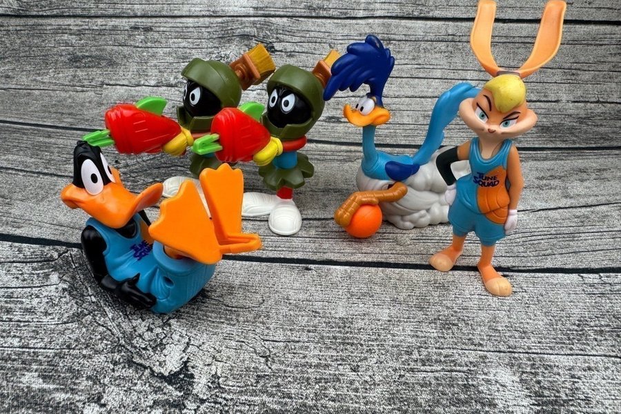 Space Jam figurer säljes. Inkluderar Daffy Duck, Lola Bunny, Road Runner och två Martian figurer.