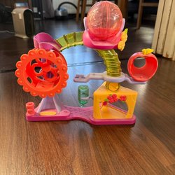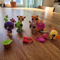 Magnetisk björn petshop med lurviga öron och tassar, tillsammans med accessoar.
