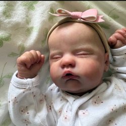 Söt reborn docka med stängda ögon. Dockan har en vit body. Jätte mjuk,