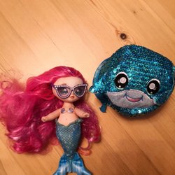 Söt Na! Na! Na! Surprise docka med lila hår och tillhörande kläder och skor. Perfekt för samlare eller barn som älskar dockor.