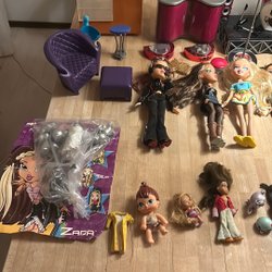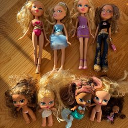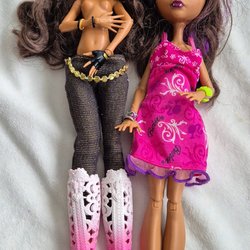 Två söta dockor med rosa klänningar, material plast, höjd ca 14cm.