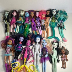 5 Monster High dockor. Överlag fint skick men alla har tecken på lek, -mindre skavanker kan förekomma och de säljes i befintligt skick.