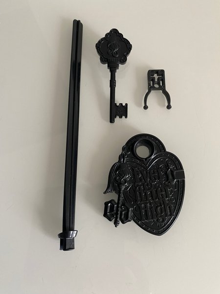 Svart dockställning från Ever After High. Inkluderar bas, stång, nyckel och fäste.