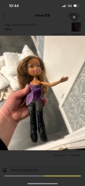 Bratz docka från 2001 med lila topp och glittriga jeans.