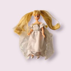 Beskrivning: Rubens Barn docka med klänning och rosett i håret.