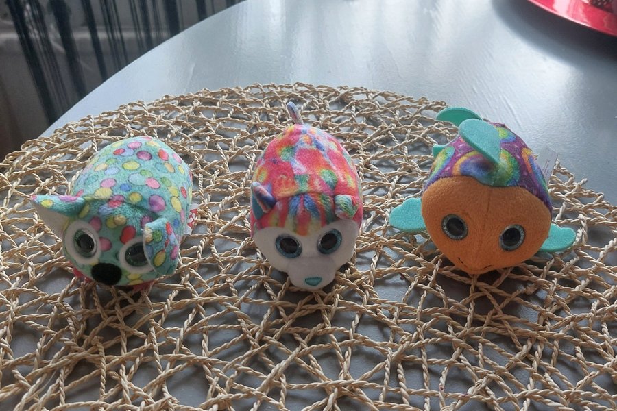 3 st Tygdockor med stora ögon. Perfekt för barn som älskar mjuka leksaker.
