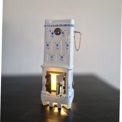 miniatyr kakelugn, miniatyrkakelugn, keramik, porslin, handgjord, handmålad, blåvit, blå vit, vintage, retro, design, dockskåp, dockskåpsmöbler, Lundby, Sylvanian Families, 1:12, 1:16, 1:18, samlarobjekt, hantverk, shabby chic, lantlig stil, gustaviansk, prydnad, inredning, keramikugn, mini stove, miniature tile stove.