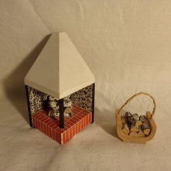 En charmig vedkorg fylld med vedträn. Mycket fin.