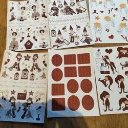 Fyra små presentaskar / paket i miniatyrformat. Perfekt för dockskåpet eller annat pyssel.