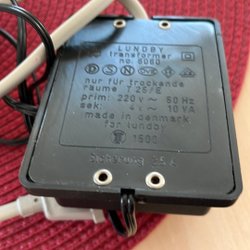 Lundby transformator för 220V AC utgång 4V. Modell 5060. Tillverkad i Danmark.