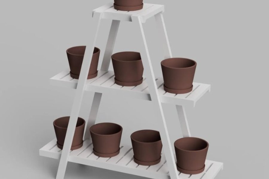 Vit blomsterställning för flera krukor.