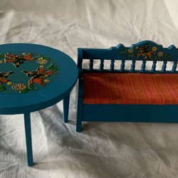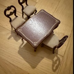 Ett charmigt miniatyrbord i vit färg. Perfekt för dockskåpet eller som en dekorativ detalj i hemmet. Bordet har fina detaljer och en klassisk design.