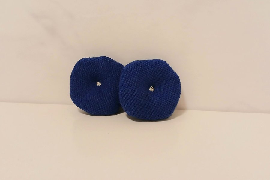 Två runda blå kuddar till dockskåp, passar till Lundby dockhus. Ca 3 cm i diameter.