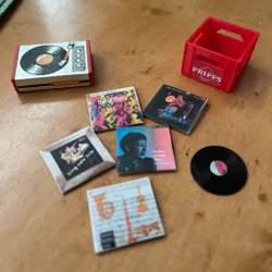 En svartvit och en blåvit matta i fint skick för dockskåp i skala 1:18 eller 1:12 beroende på hur stor man vill ha.