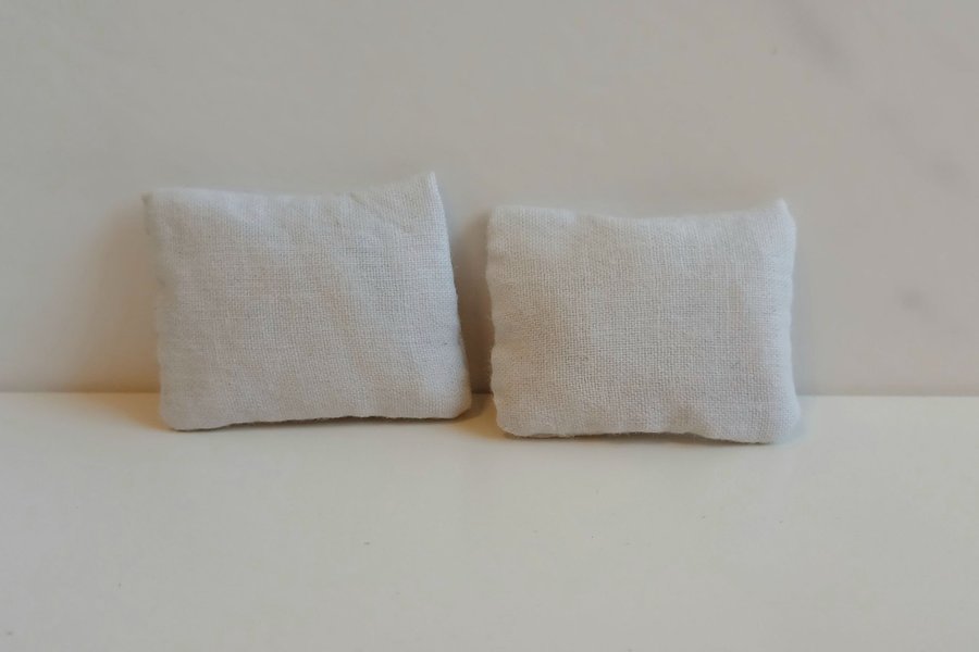 Sängkuddar till dockhus, 3×4cm. Passar till Lundby dockskåp.