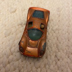 Röd leksakslastbil i metall. Perfekt för samlare eller barn som gillar att leka med bilar.