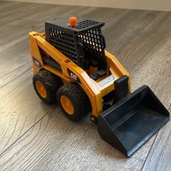 En gul leksaksbil med DHL-logotyp. Perfekt för barn som älskar fordon och lek.