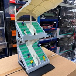 Dessutom innehåller satsen, fem stycken normala rakor och sex stycken normala kurvor. Satsen innehåller ett st handtag, samt flaggor och självlysande, bropelare och räcken.