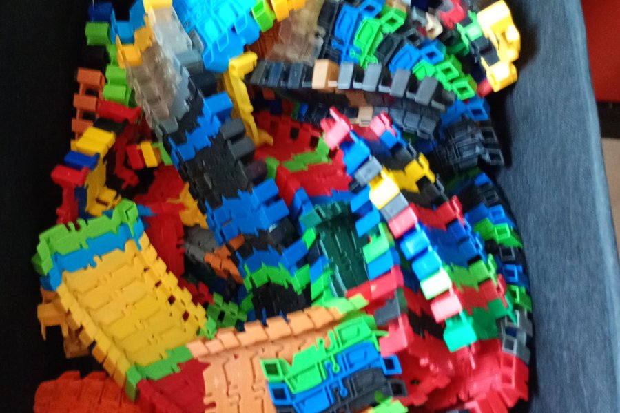 Låda full med Magic Tracks bitar. Perfekt för den som vill bygga en egen bana.
