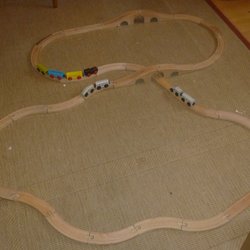 Stort set med tågbana i trä