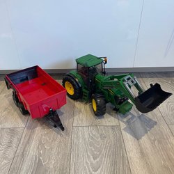 Leksakstraktor med tillhörande släp. Instruktionsmanual medföljer. Passar barn från 5 år.