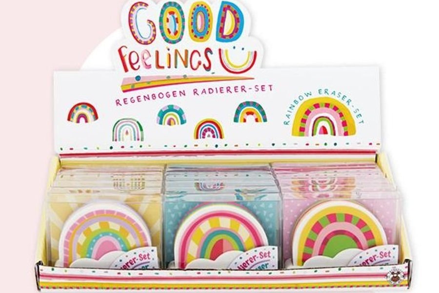 Dessa härliga suddgummin gör dig inte bara på gott humör när du raderar, de har också en hållare med lock som skyddar dem från att smutsas ner när suddgummit ligger i pennskrinet. Dra bara av locket och det roliga att radera kan börja.