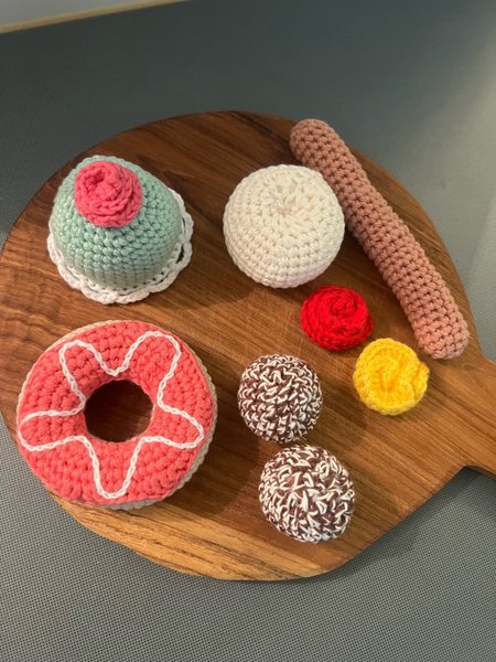 Korv med mos, donut, chokladboll, prinsessbakelse