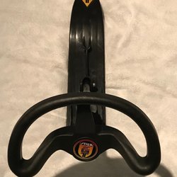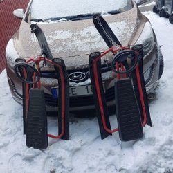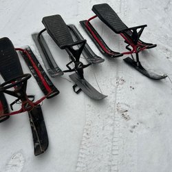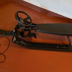Snowracer i röd och svart färg. Perfekt för vinterlek och snöiga dagar och pulkasugna barn som vill ha lite mer kontroll i backen