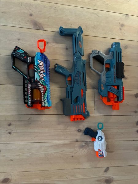 Säljer ett set med Nerf vapen. Innehåller modeller som Elite 2.0 Tetrad QS-4, Elite 2.0 Commander RD-6 och X-Shot.