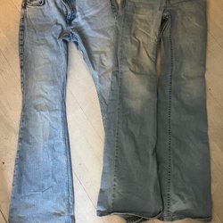 Oanvända och har blivit liggande i garderoben. Färg mörkturkos. Storlek 158/164