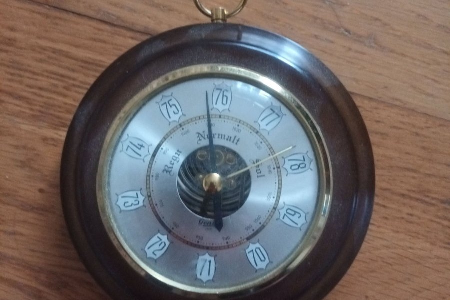 Barometern mäter atmosfärstrycket och passar bra in i ett rum eller vardagsrum.