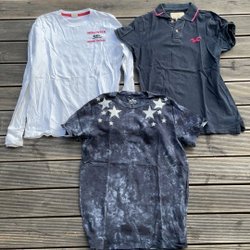 Här är ett paket med t-shirts i olika färger och med olika tryck. Stl M. Bland annat märken som Tommy Hilfiger, Guess, Hard Rock Cafe och puma.