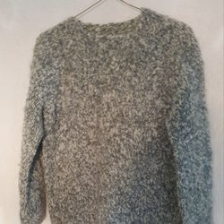 Tröja som min mamma stickat men som tyvärr inte passar mig. Storlek M-L. Tröjan har en rund halsringning och långa ärmar. Observera att det finns en liten defekt på framsidan av tröjan.