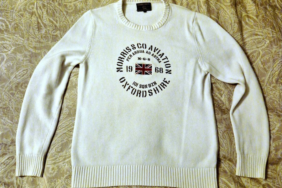 Morris Vit Stickad Tröja Medium