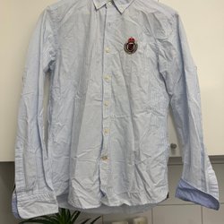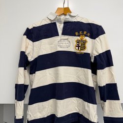 Tröja med V-ringning och flätstickat mönster. Långa ärmar och muddar vid ärmslut och nederkant. En broderad logotyp finns på ena ärmen.